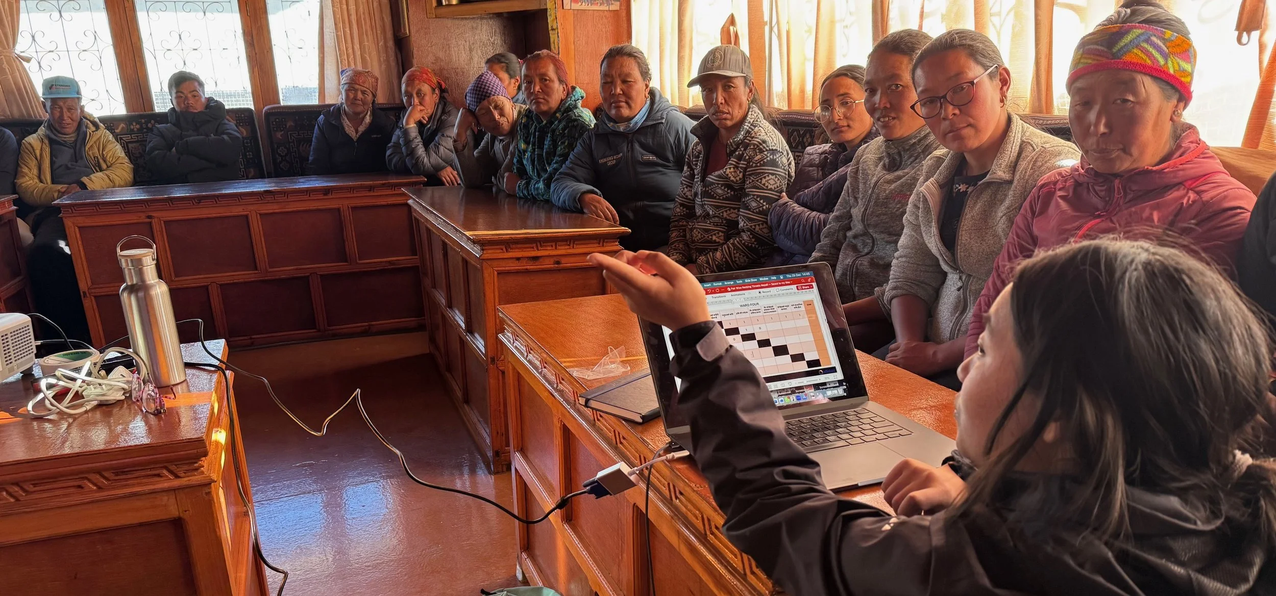 During these meetings, residents were invited to verify and contextualise the survey findings through their own local knowledge and lived experience. Some of the threats to community wellbeing that surfaced in the survey and community meetings included concerns about climate change, the outmigration of sherpas, threats to language and traditions, non-Sherpas owning land and the loss of livestock inside the national park.